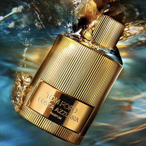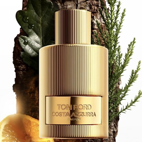 “A true escape to the hedonistic joys of the Mediterranean, that is Costa Azzurra PARFUM. It enhances the original fragrance with wood and aromatic elements. Costa Azzurra PARFUM exudes a fresh atmosphere through the crisp Italian lemon, while the dense coastal forest is felt by the enlarged oak extract and the cypress. Beautiful cistus absolue and a harmony of ambers are illuminated – while capturing the spirit of private, unobstructed luxury. Costa Azzurra PARFUM is in a luxurious, metallic bottle. The 50 ml and 100 ml editions are each housed in an elegant, ribbed vial with a slim, gold metal plaque and matching cap.”