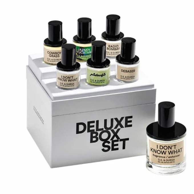In the Deluxe Box Set by D.S. & Durga you will discover six different miniature perfumes. The New York perfume house is releasing quirky fragrance creations, challenging the wearer to discover new worlds. With versatile sources of inspiration such as indie music and the Wild West, the eccentric scents of D.S. know. & Durga to broaden your horizons.