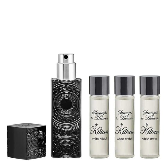 With the Straight to Heaven Travelset from KILIAN PARIS you always have your favorite perfume with you. Straight to Heaven is a mysterious perfume with notes of nutmeg, cedar and Brazilian rosewood. Smoldering sensuality and a fiery shoot of rich dark rum determine the opening, the sweet gourmand chord softened by creamy vanilla and dried fruit. The scent ends with spicy patchouli combined with the fresh, woody scent of cedar. The smell is an invitation to taste the forbidden fruit. The travel set contains 4 vials of 7.5 ml.