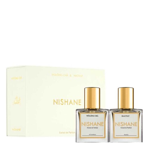 Hacivat + Wūlóng Chá by NISHANE is a duo of the perfume Hacivat and Wūlóng Chá in vials of 15ml. Hacivat is an eau cypre and owes its joyful structure to stimulating, brilliant notes of pineapple and bergamot. Powdery notes of jasmine and aromatic patchouli are supported by powerful woods. Wūlóng Chá is a citrus-fresh, green perfume that gives a unique interpretation to the scent of oolong tea. The opening with citrus notes of mandarin, bergamot and orange creates a sparkling sensation, while Mediterranean fig and musk in the base provide an enveloping distinction.