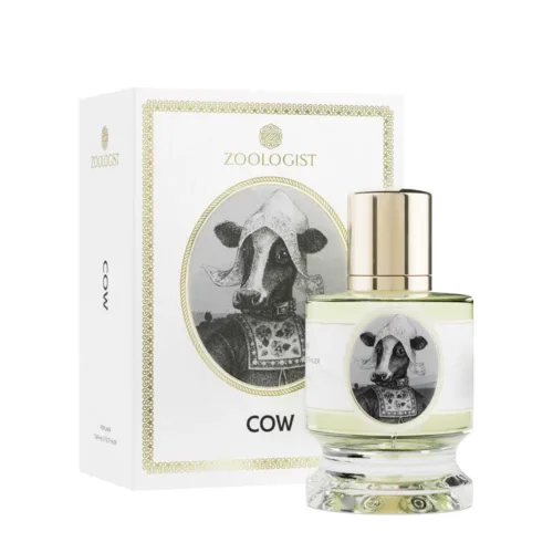 Zoologist Cow Extrait de Parfum is a unisex amber oriental perfume. Created by the perfumer Nathalie Feisthauer, Cow Eau de Parfum evokes lush green pastures that tumble toward the horizon, arching beneath the imposing silhouette of a mountain range. Cumulus clouds roll across a bright blue sky, their massive shadows gliding over a peacefully grazing herd. In a corner of the meadow, a tiny calf braces quivering limbs and, with a mighty lurch, stumbles up to take its maiden steps. Its velvet snout prods, rooting at its mother, until the release of warm milk signals a satisfying welcome to this vast new world. Zoologist Cow brings to mind a bucolic scene, a myriad of scents from Mother Nature’s nurturing bosom. Innocent florals sway among soft grasses, while apple gently sweetens the soft aroma of fresh milk. The result is a place both familiar and reassuring, where warm arms unfold to welcome us into a loving embrace. A place called home. Zoologist Cow does not use animal products.