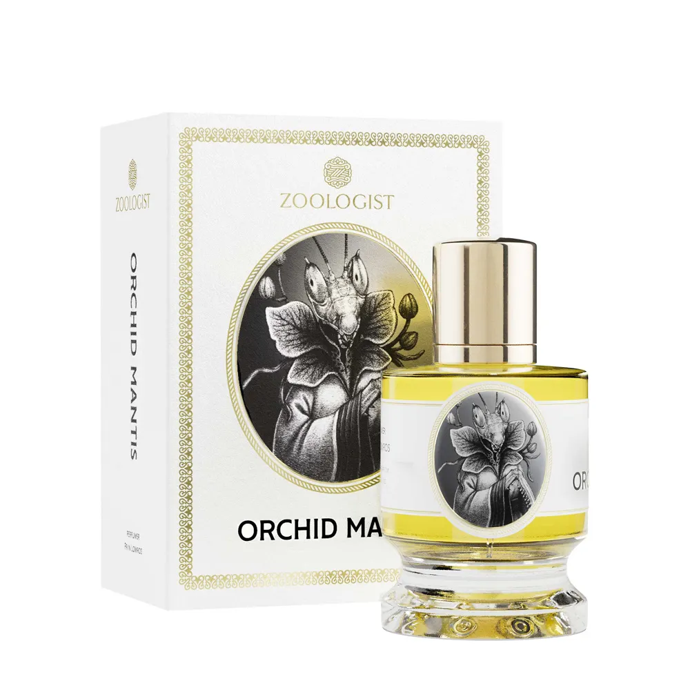 Zoologist Orchid Mantis Extrait de Parfum is a unisex green perfume.In the sultry twilight of a rainforest, an orchid sways like a living temptation, its shimmering petals attracting an unsuspecting butterfly. But when the insect approaches, the flower reveals itself to be an orchid mantis, grasping its wings with sharp legs and consuming its fragility in an instant. This fascinating and disturbing game of seduction takes shape in Zoologist Orchid Mantis, an olfactory illusion that beguiles the senses. Juicy pear, velvety rose and ethereal jasmine blend with aromatic notes of basil and ylang-ylang, creating a sensual heart that evokes the intense scent of tropical orchids. In the background, patchouli, musk, sandalwood and vetiver paint the picture of a humid and mysterious jungle. Orchid Mantis Extrait de Parfum is a hypnotic and magnetic fragrance, and Orchid Mantis Extrait de Parfum leaves a lingering memory on the skin: beauty can have a predatory side.